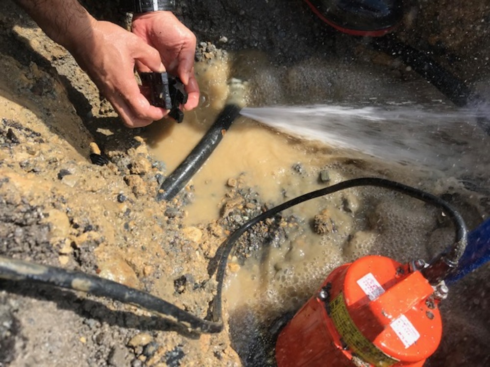 < 某ホテルユニット入口床 水による腐食及び漏水防止工事